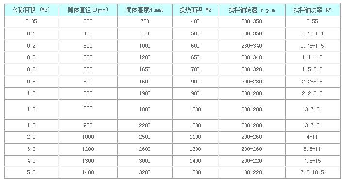 注:冷却加热形式有夹套式、内盘管式,外环管式,供用户选用。