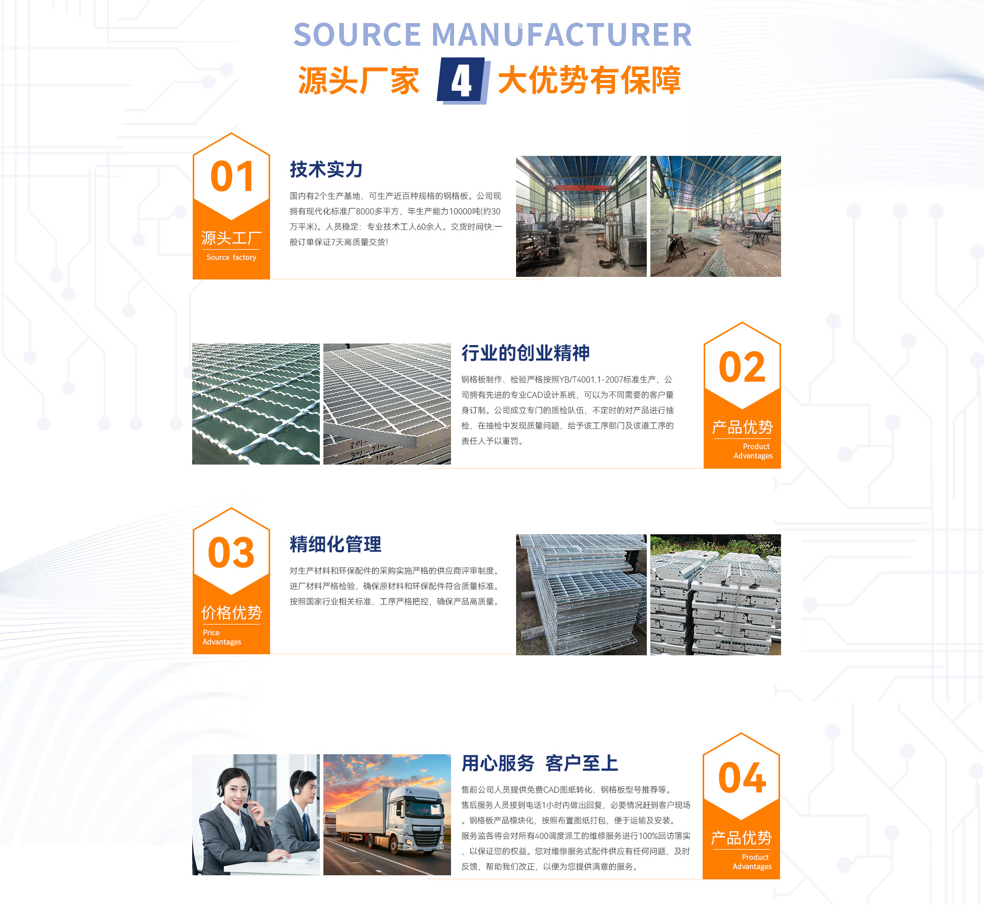 无锡逸博钢格板有限公司位于风景秀丽的太湖之滨江苏省无锡市惠山区堰桥街道,是国内大型的专业生产钢格板的厂家,公司集钢格板、不锈钢格板、楼梯踏步板、水沟盖板、互插式钢格板、复合钢格板、齿形钢格板、安装夹、小型钢结构等延伸产品生产的现代化企业。公司占地面积5000平方米,公司技术力量雄厚,拥有先进的专业CAD设计系统,竭诚为广大客户提供优质的产品和满意的服务。公司严格按中国GB700-88钢材标准、钢格板YB/T4001—2007标准生产。 无锡逸博钢格板有限公司产品广泛运用于石油、化工、港口、电力、运输、造纸、医药、钢铁、食品、市政、房地产、制造业等各个领域。特别是在市政工程建设应用中,采用钢格板制造的新型沟盖板、雨水井盖,具有空隙率高,透水量大,承载力好,耐腐蚀,外观新颖等优点,是取代铸铁盖板和水泥预制盖板的理想产品,在众多大型项目上被大量采用。 …