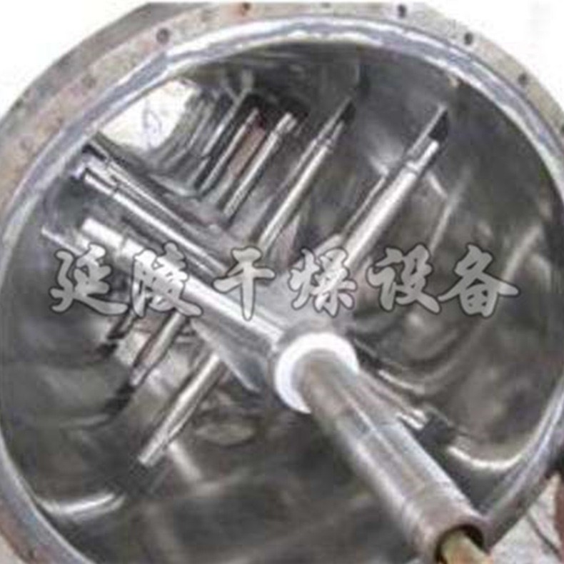 真空耙式干燥机是一种新颖卧式间歇式真空干燥设备,湿物料经传导蒸发,带有刮板搅拌器不断清除热面上的物料,并在容器内推移形成循环流,水份蒸发后由真空泵抽走。