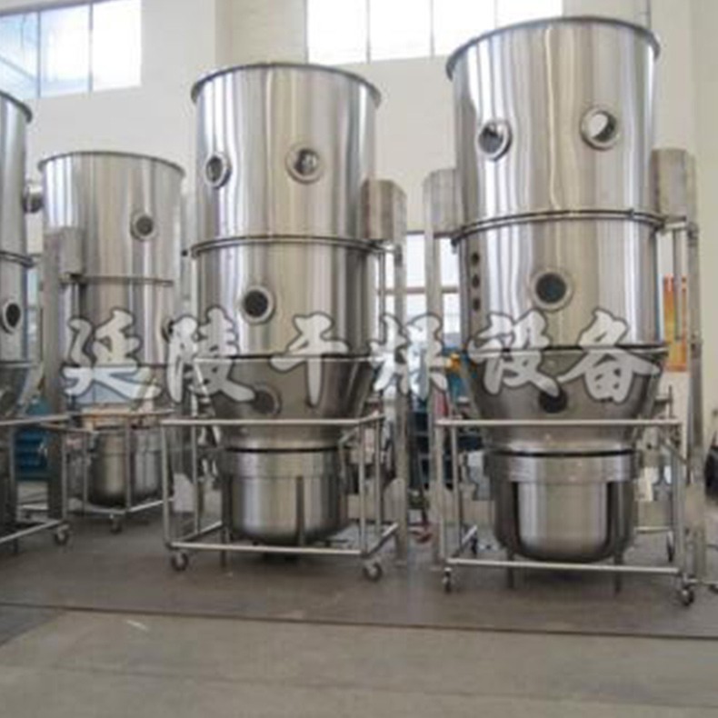 物料粉末粒子,在原料容器(流化床)中呈沸腾流化状态,受到经过净化后的加热空气预热和混合,将粘合剂溶液雾化喷入,使若干粒子聚集成含有粘合剂的团粒,由于热空气对物料的不断干燥,使团粒中水份蒸发,粘合剂凝固,此过程不断重复进行,形成理想的、均匀的多微孔球状颗粒。
