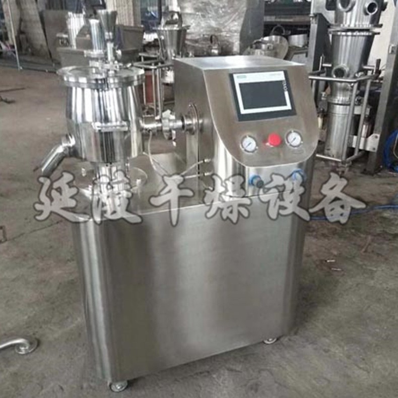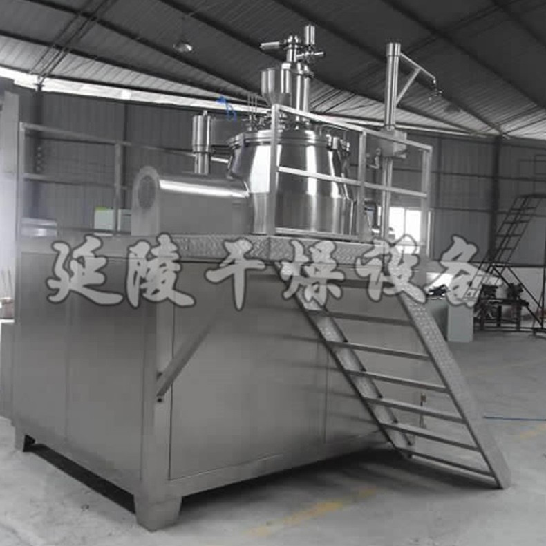 本制粒机是粉体物料与粘合剂在圆筒形容器中由底步混合桨充分混合成湿润软材,然后由侧置的高速粉碎桨切割成均匀的湿颗粒。