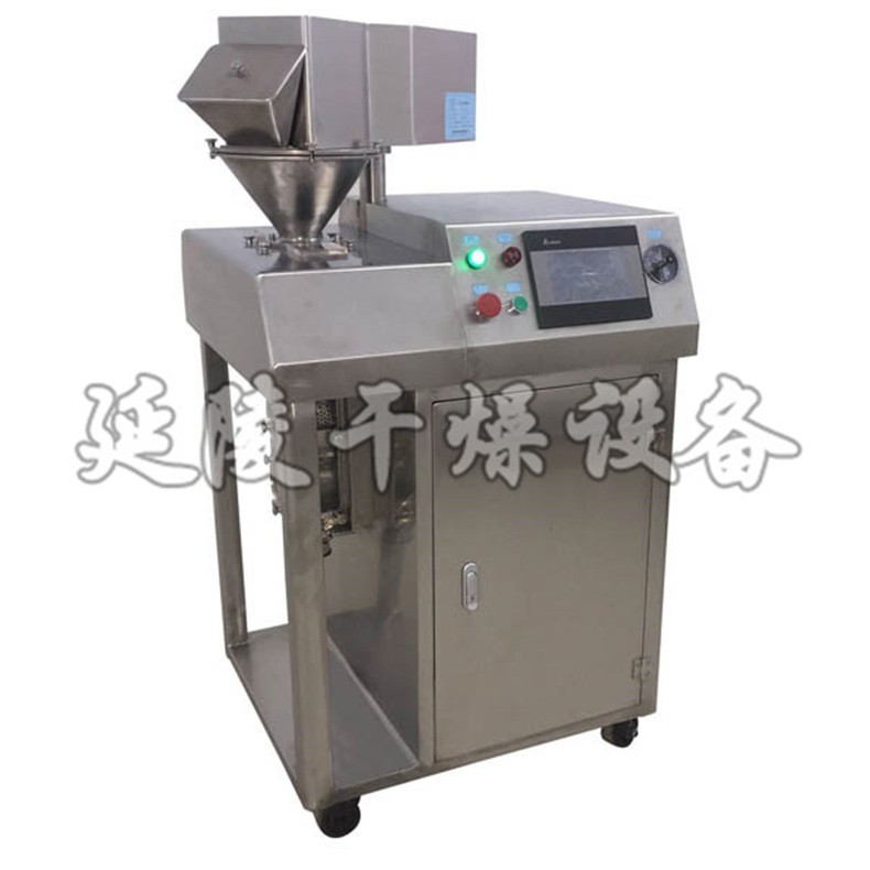 本设备使用了***新的压辊控制技术,通过调节不同物料及同一批物料不同批次之间的物理波动,使得干法制粒机的工艺参数(如处理量、片状密度、压辊压力、转速等)能够被***重复的调整,从而高效的生产出高质量的颗粒,并提高了颗粒的稳定性、崩解性和溶解性。且设备占地少、工序简单、节能环保,易于拆卸清洗,制成颗粒可直接压片成灌装胶囊。在制药工业中应用广泛。